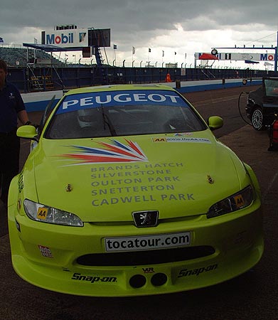 This is the unusual signwriting on the Aaron Slight Peugeot, which made its public debut at Donington Park this morning. Slight was eighth fastest in first free practice, and in typical TOCA style, eighth fastest in the second session - by which time the Astras had taken up their customary 1 - 4, despite carrying the full ballast requirement now.