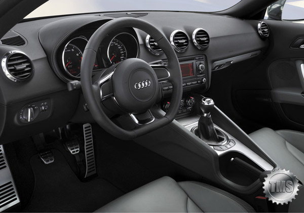 The cockpit is oriented strictly to the driver and is perfectly ergonomic in design. It embodies the classic circles motif of the TT in a number of ways, such as in the three centre air vents.